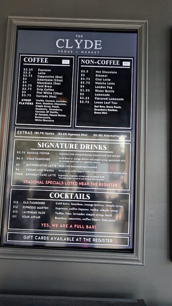 Next day, along a street, we went into a coffeeshop called Clyde, it is spacious and contemporary with reasonable prices. One friend said she likes to make coffee from beans all over the worlds, and the other friend said she loves weird drinks. They both found their drinks happily here.