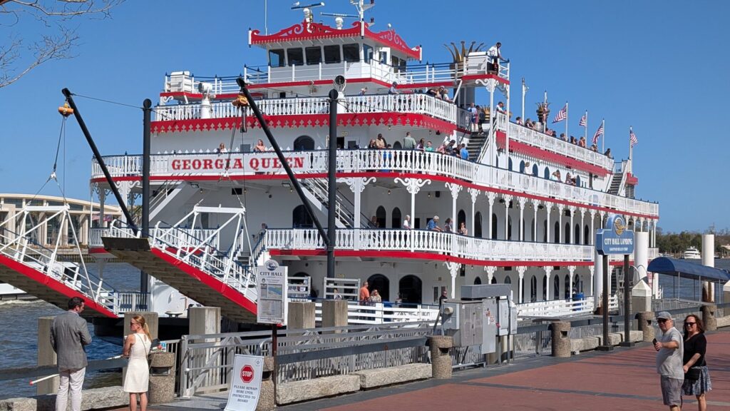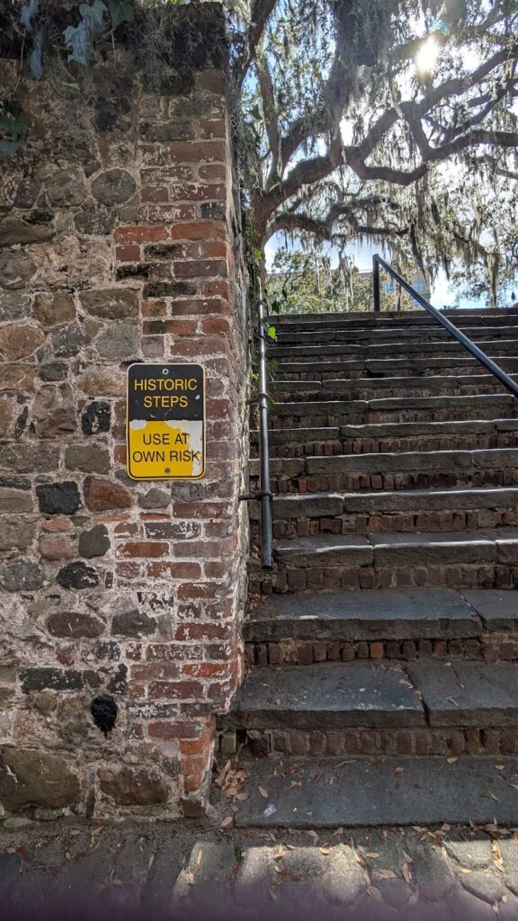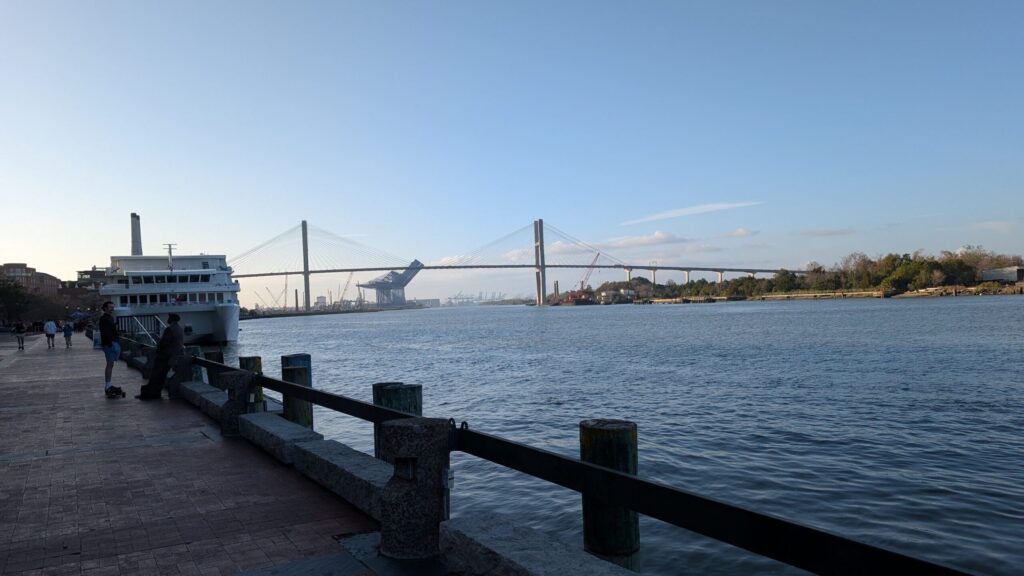 What are some of the fun things to do in Savannah? You can jog along the Savannah river for short miles and watch a big big container ship moving in. At the mouth of the Savannah river, there is the Atlantic ocean. Along the river, you can glance shops and restaurants and there is a cable car “ding ding” besides you. When we ran by, there was a street performer who played loud some marching band music to cheer us up. If you want to run longer miles, there is also Forsyth Park a bit further away like the central park in NYC, where there are waterfalls, statues, meadows and gardens.